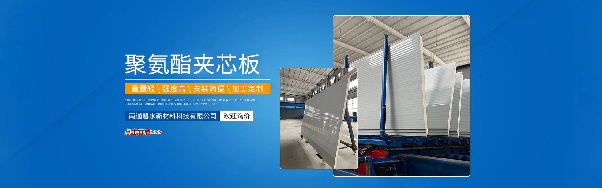 南通碧水新材料科技有限公司所生產的彩鋼瓦、樓承板、彩鋼落水管、不銹鋼瓦、鋁合金瓦、聚氨酯冷庫板、聚氨酯夾芯板、聚氨酯封邊巖棉夾芯板、四企口巖棉夾芯板、C/Z型鋼等均已行銷全國,廣泛應用于各大工業廠房,建筑場所。現公司已成功打入國際市場,并得到同行業的高度認可。我們會始終以先進的技術,嚴格的管理,良好的信譽為各界朋友提供更優質的服務。致力于構建一個更高效,更安全,更科學的現代化生......